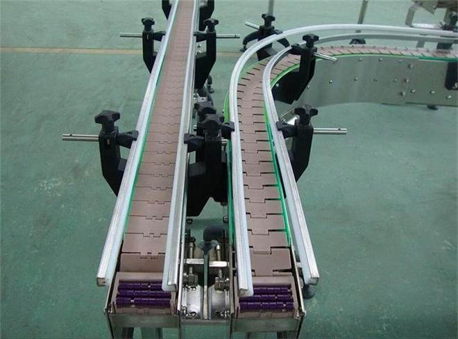 流水線的鏈板厚度,一般要考慮因素:每塊鏈板必須能承受住相應(yīng)物料的總重量,并且撓度要限制到最小,這樣才能防止鏈板在搭接處的彎曲;裝載時(shí)下落的塊狀物料沖擊會(huì)引起鏈板變形;被輸送物料的磨琢性;腐蝕性及耐化學(xué)反應(yīng);預(yù)期的使用壽命;經(jīng)濟(jì)費(fèi)用(造價(jià))的限制。